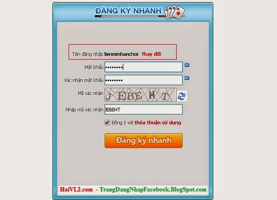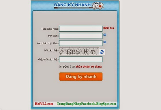 - Sau khi nhấn vào: đăng ký tài khoản bạn sẽ được đưa tới trang Đăng Ký Nhanh, bây giờ hãy chuẩn bị và điền đầy đủ thông tin vào form theo hình dưới đây:Bây giờ hãy nhập mã xã nhận, tích vào ô Đồng ý với Thỏa thuận sử dụng sau đó nhấn vòa nút Đăng Ký Nhanh để hoàn tất quá trình đăng ký.