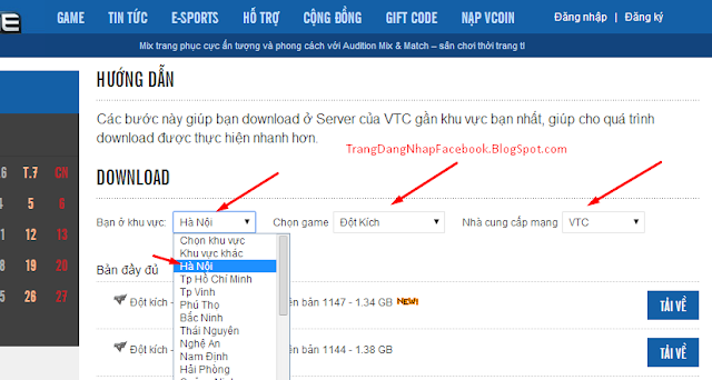 Nếu bạn đang ở Thanh Hóa, hãy chọn khu vực Thanh Hóa, nếu bạn đang ở Hà Nội, hãy chọn khu vực Hà Nội, khi tải game từ server gần chỗ bạn ở sẽ nhanh hơn rất nhiều.